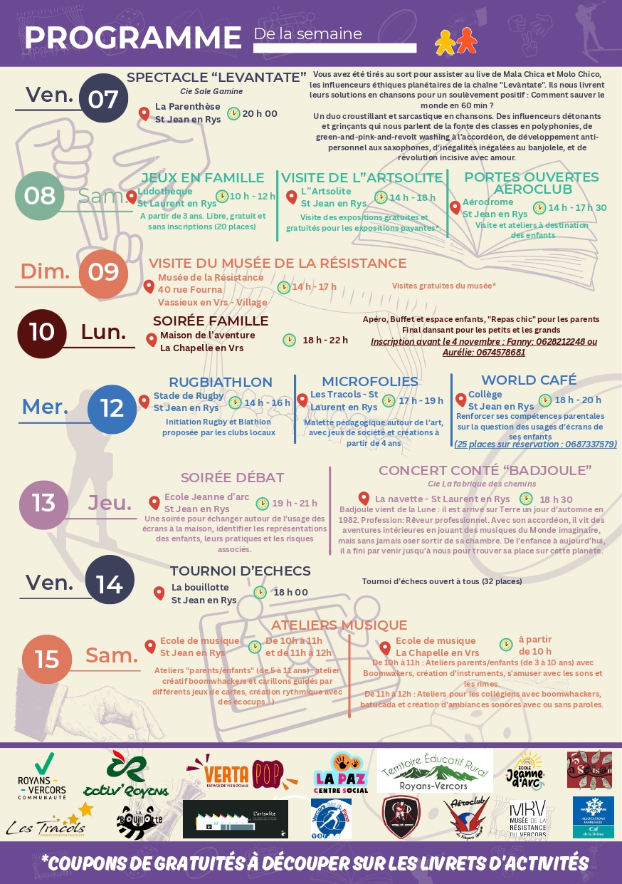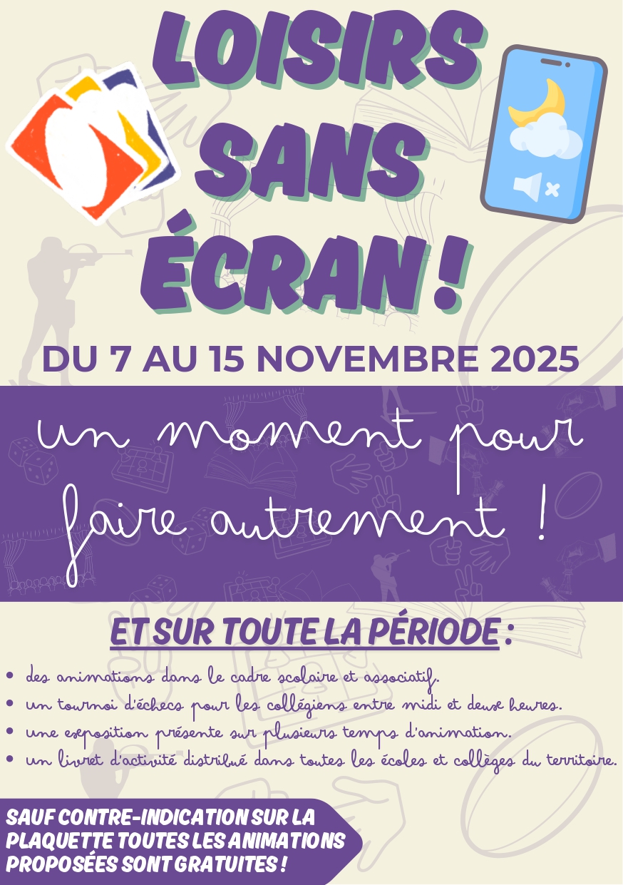 La programmation de la semaine « loisirs sans écran ! » qui se déroulera du 7 au 15 novembre 2025 sur le territoire.