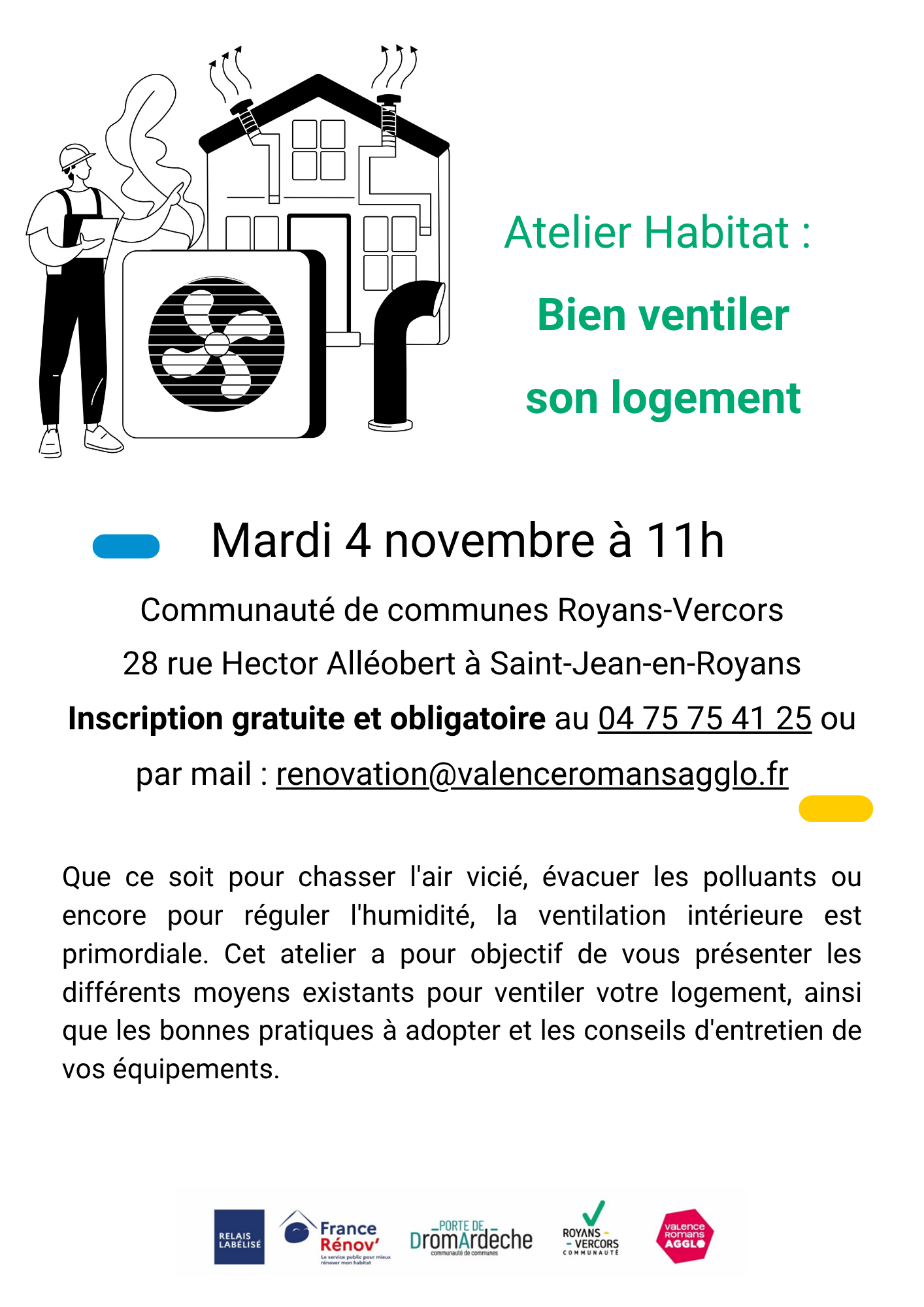 « Bien ventiler son logement » mardi 4 novembre 2025, 11h, au siège de la CCRV Saint-Jean-en-Royans